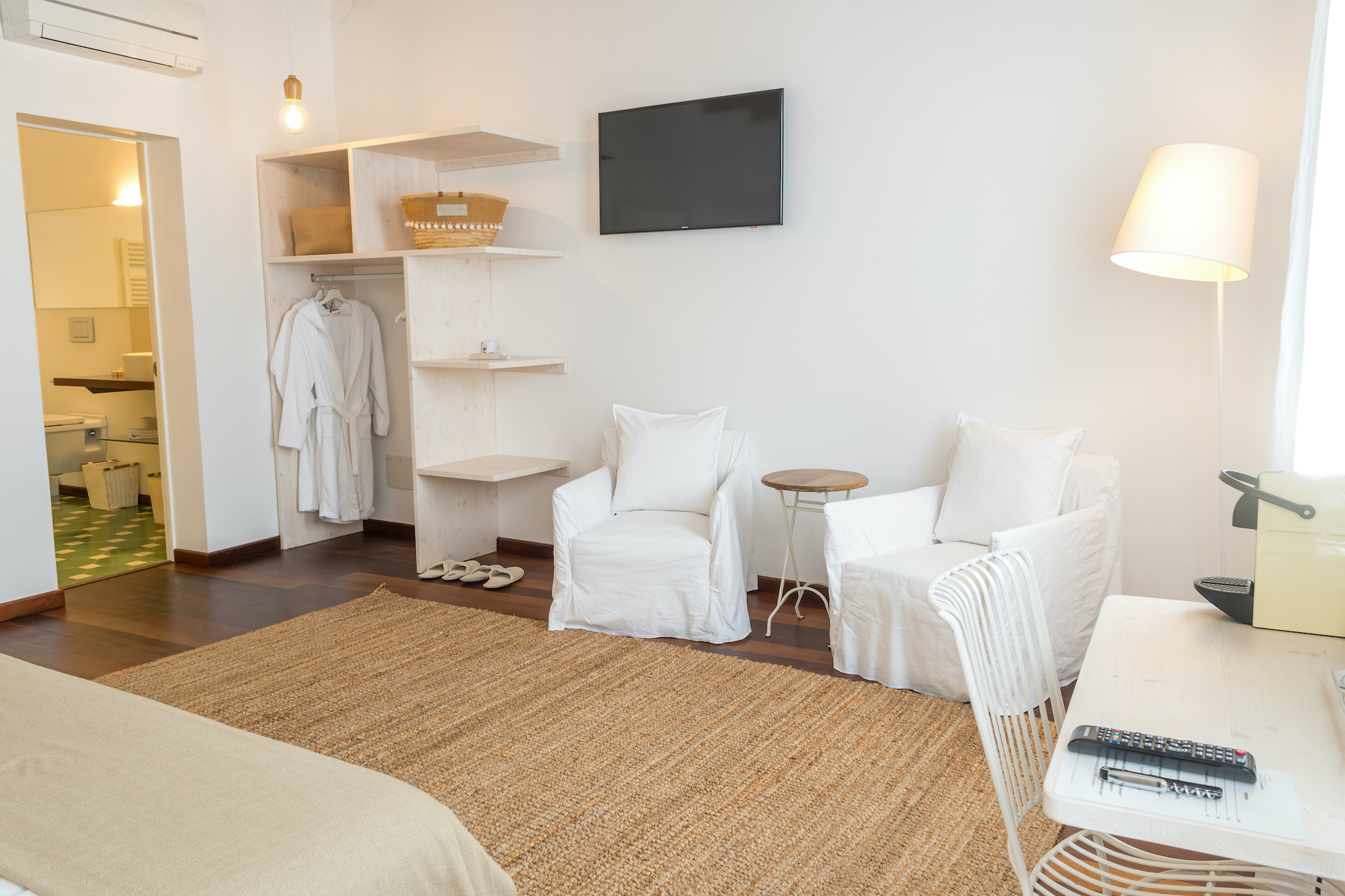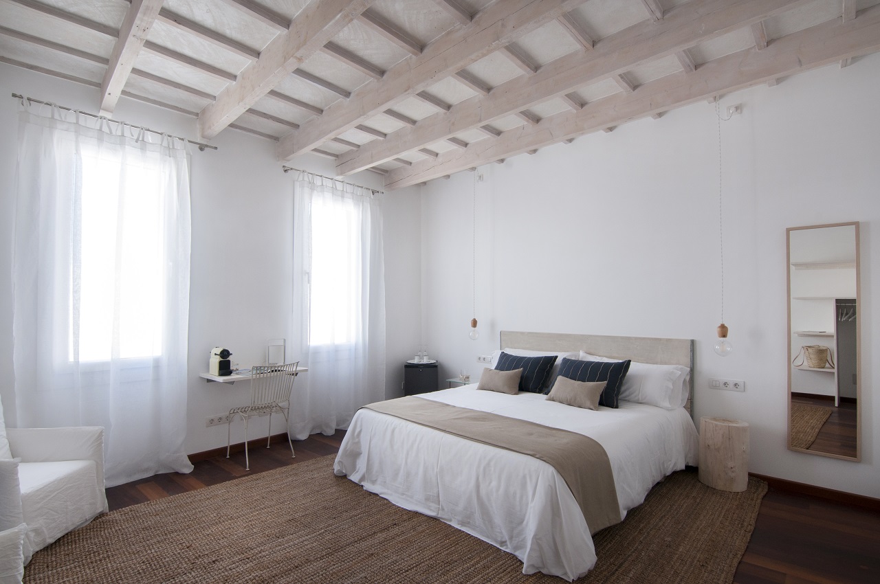 Proveniente del sur, el siroco da nombre a otra de las estancias de Ca s’Arader. La calidez es, haciendo honor al viento que la apadrina, una de las principales características de esta habitación. Al igual que las otras tres, dispone de cama doble (1,80m x 2m), televisión con pantalla de LCD, acceso gratuito a internet (wifi), aire acondicionado, calefacción, baño con bañera y secador de pelo.
